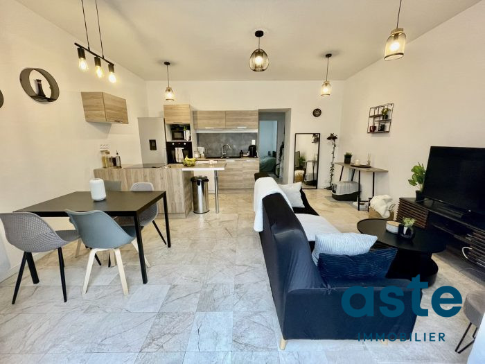 L’appartement se compose d’un espace de vie lumineux, d’une cuisine aménagée et équipée ouverte sur le séjour, d’un dégagement, d’une salle d’eau avec wc et d’une chambre.