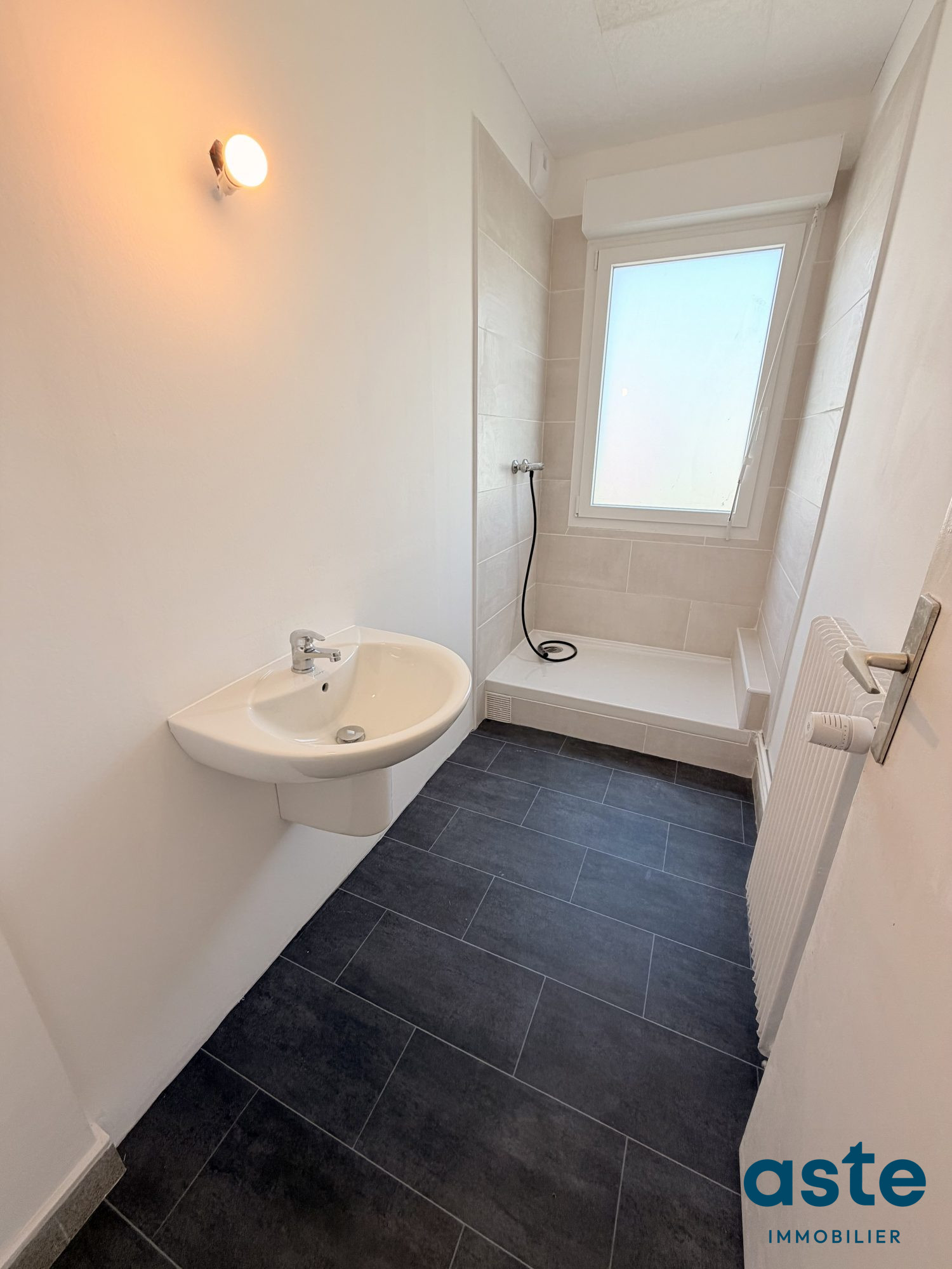 L’appartement se compose d’une entrée avec dégagements, un séjour avec balcon profitant d’une vue dégagée, deux chambres, une salle d’eau refaite à neuve, une cuisine avec son espace buanderie, placards, wc indépendant.